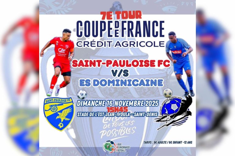 Ce dimanche après-midi, l’île sera suspendue à un seul rendez-vous : la finale régionale de la Coupe de France. À 15h45, la Saint-Pauloise FC affronte l’ES Dominicaine au Stade Jean-Ivoula, dans un match au parfum d’histoire. À la clé : une place pour le 8ᵉ tour de la prestigieuse compétition nationale.